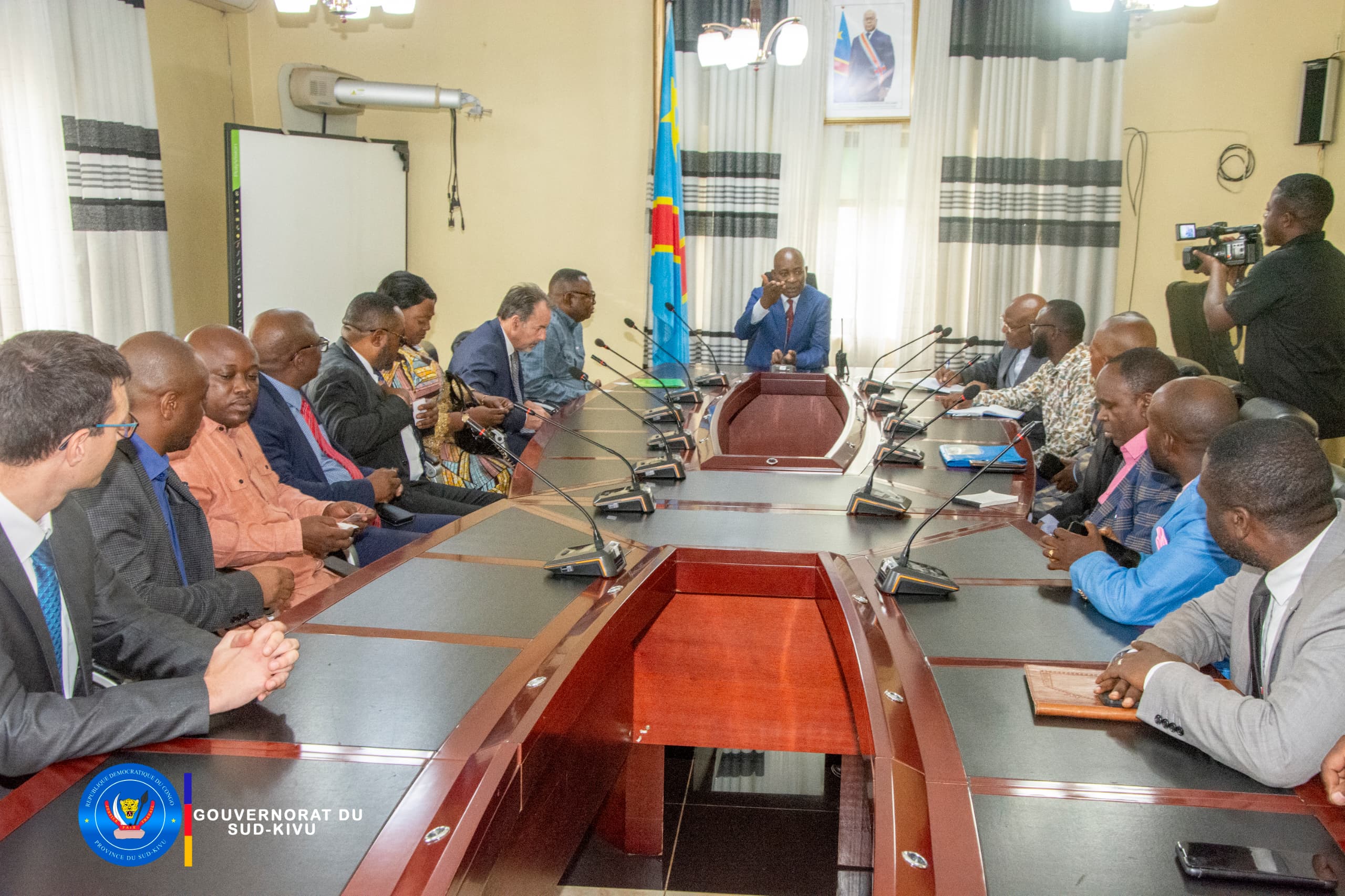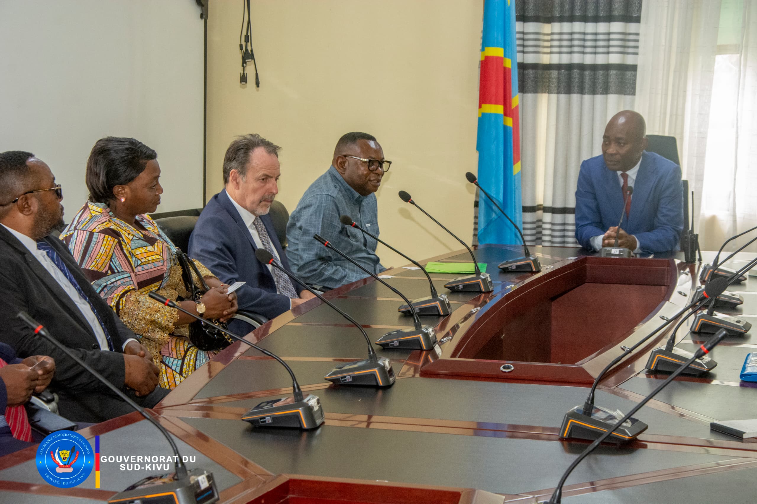 Le Gouverneur du Sud-Kivu, le Professeur Jean-Jacques PURUSI SADIKI a reçu en audience, à son bureau de travail de Nyamoma, la délégation du Ministère National de la Formation Professionnelle, venue de KINSHASA.