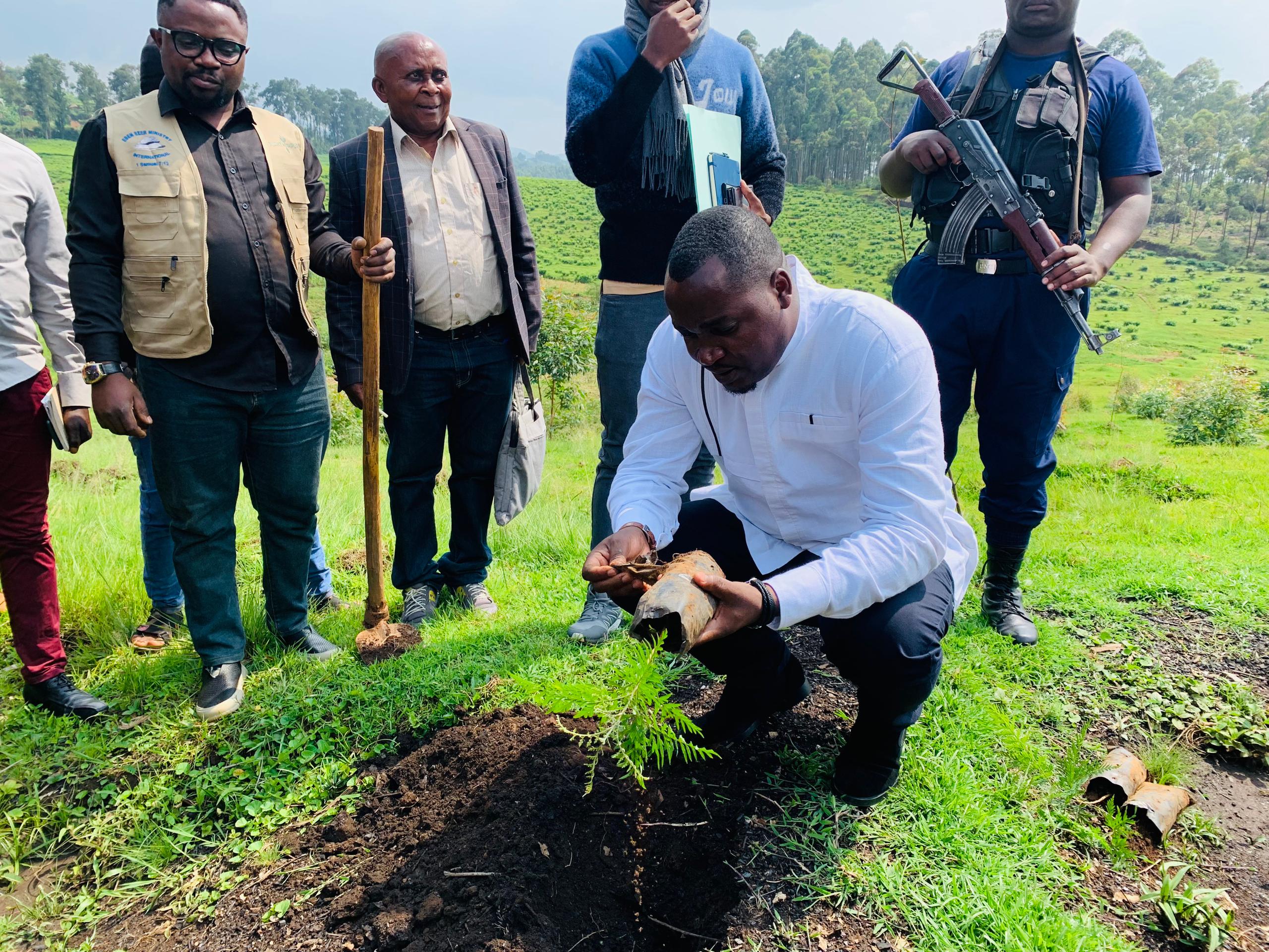 Notez que ce projet sera exécuté dans le bassin versant de la rivière Lugali et Kahungwe en Chefferie de Ngweshe. Des arbres ont été plantés symboliquement pour la circonstance dans le village Mushozi en groupement de Kamisimbi.