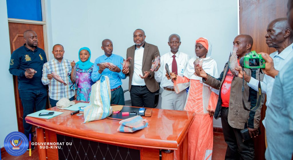 En premier, c’est la Mutualité BABWARI. Il s’agit des ressortissants de la presqu’Île d’Ubwari dans le territoire de FIZI qui ont été reçus au Cabinet du Gouverneur. Ils sont venus exprimer leur satisfaction suite au travail du gouvernement provincial, surtout la proximité de leur meilleur élu, l’Honorable Me Jean-Jacques ELAKANO, aujourd’hui Vice-Gouverneur du SUD-KIVU. Les Babwari ont réitéré leur soutien aux institutions provinciales légales, et ont appelé tous les fils et filles du Sud-Kivu à l’unité pour barrer la route à l’ennemi.