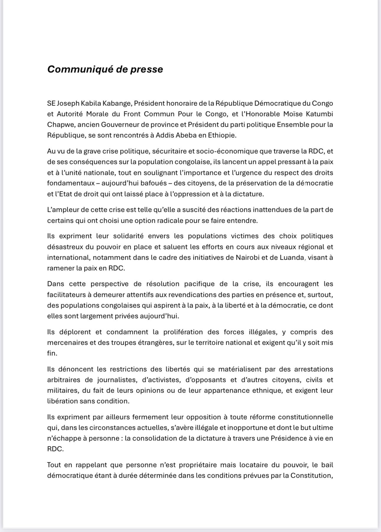 RDC_SUD-KIVU : Les membres du Mouvement Vision 30 et Génération Bahati LUKWEBO reçus en audience par le Président Urbain de l’AFDC SUD-KIVU.